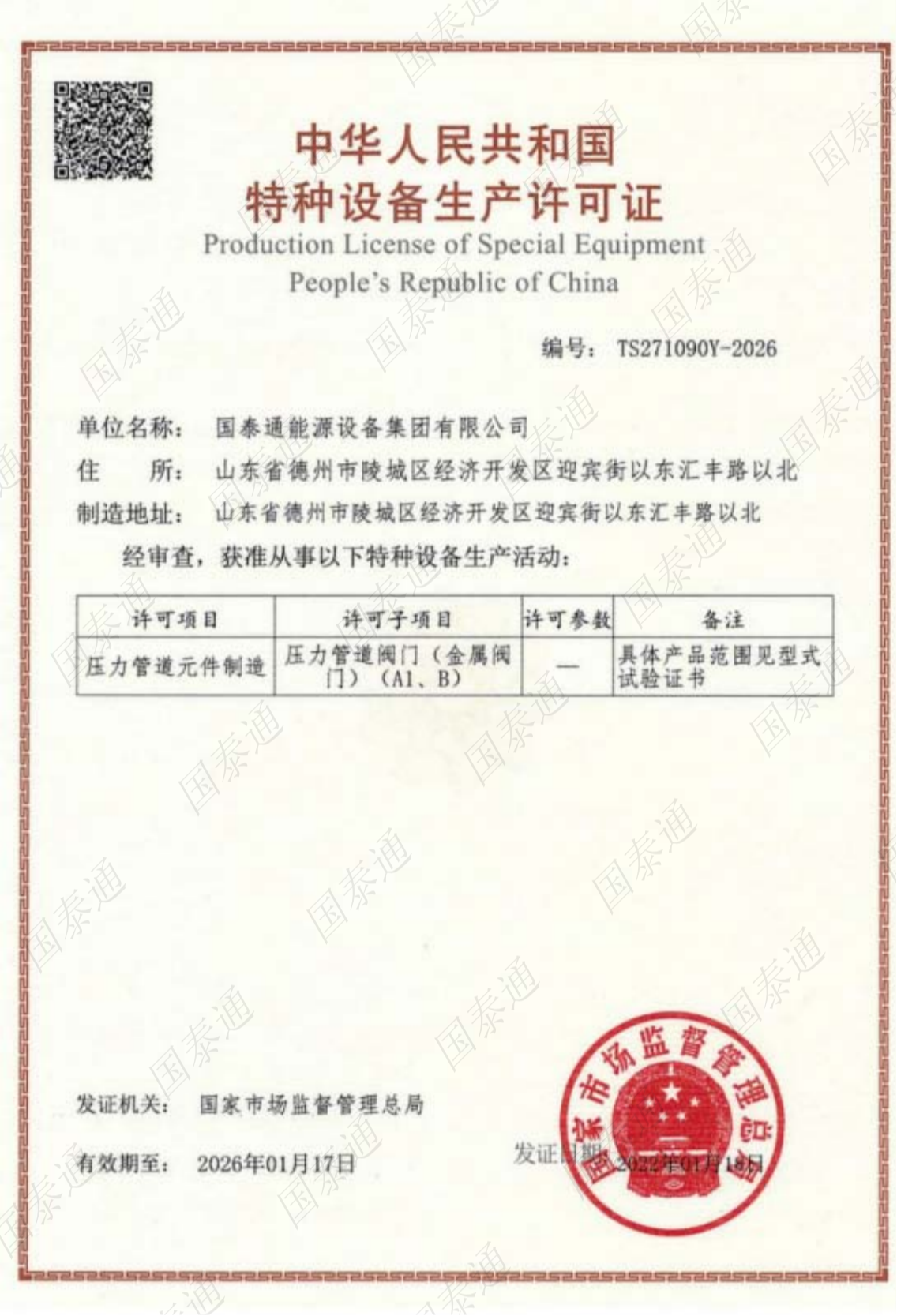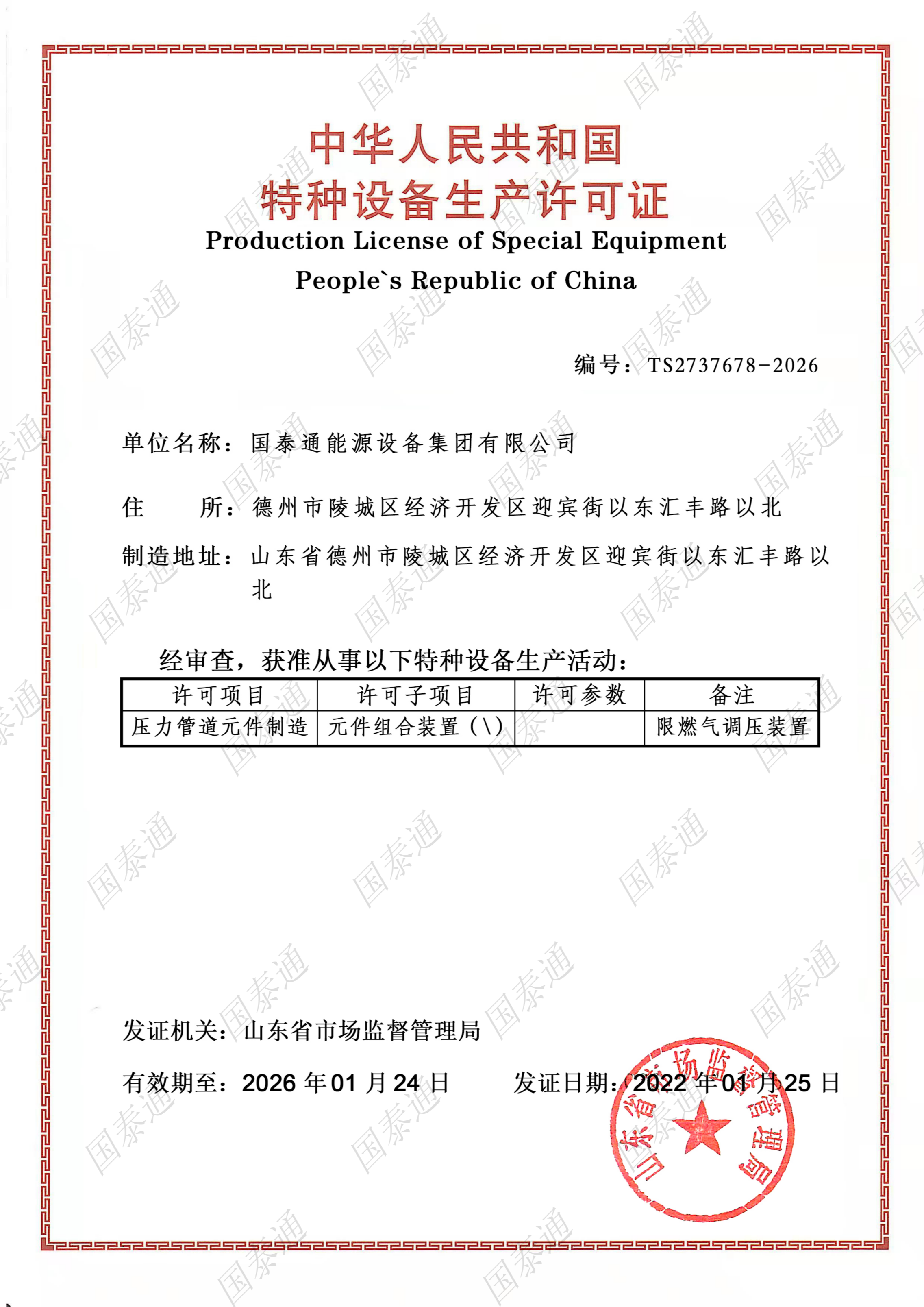國泰通能源設備集團有限公司是一家國家級高新技術企業(yè),專注于閥門和燃氣調(diào)壓輸配設備設計、研發(fā)、生產(chǎn)、銷售、服務于一體的系統(tǒng)集成解決方案服務商。公司成立于2011年,注冊資金10168萬元,擁有北京運營中心和山東生產(chǎn)中心兩大基地,北京運營中心主要承擔集團公司的戰(zhàn)略規(guī)劃發(fā)展,山東生產(chǎn)基地承擔集團公司產(chǎn)品研發(fā)、生產(chǎn)和銷售服務,集團公司山東生產(chǎn)基地占地面積5萬余平方米,總建筑面積3萬余平方米,有著現(xiàn)代化的廠房和辦公大樓。集團公司經(jīng)過十多年的茁壯發(fā)展,現(xiàn)擁有中、高級工程師27名,生產(chǎn)服務技術人員二百余人......